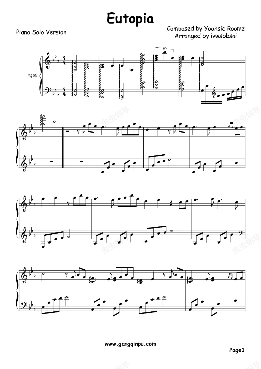 钢琴谱:Eutopia