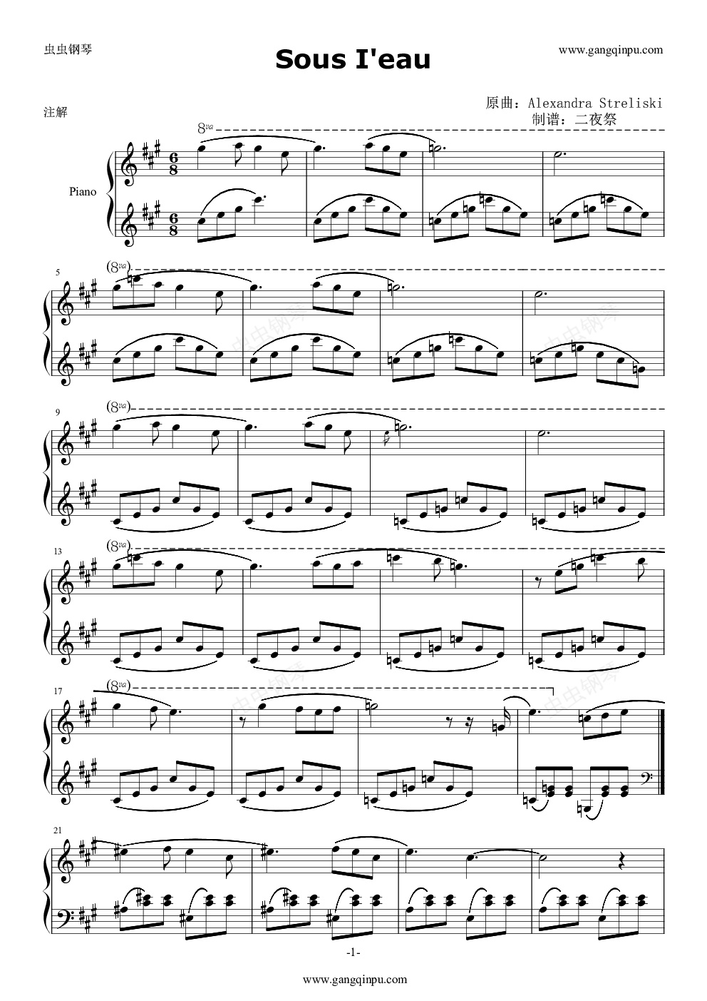 钢琴谱:【Alexandra Streliski】Sous I'eau