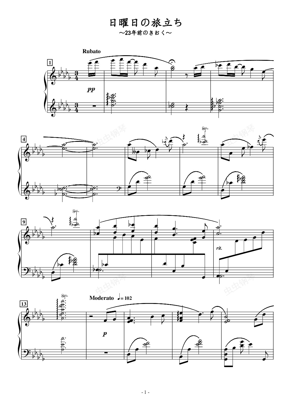 钢琴谱:日曜日の旅立ち ~23年前のきおく~