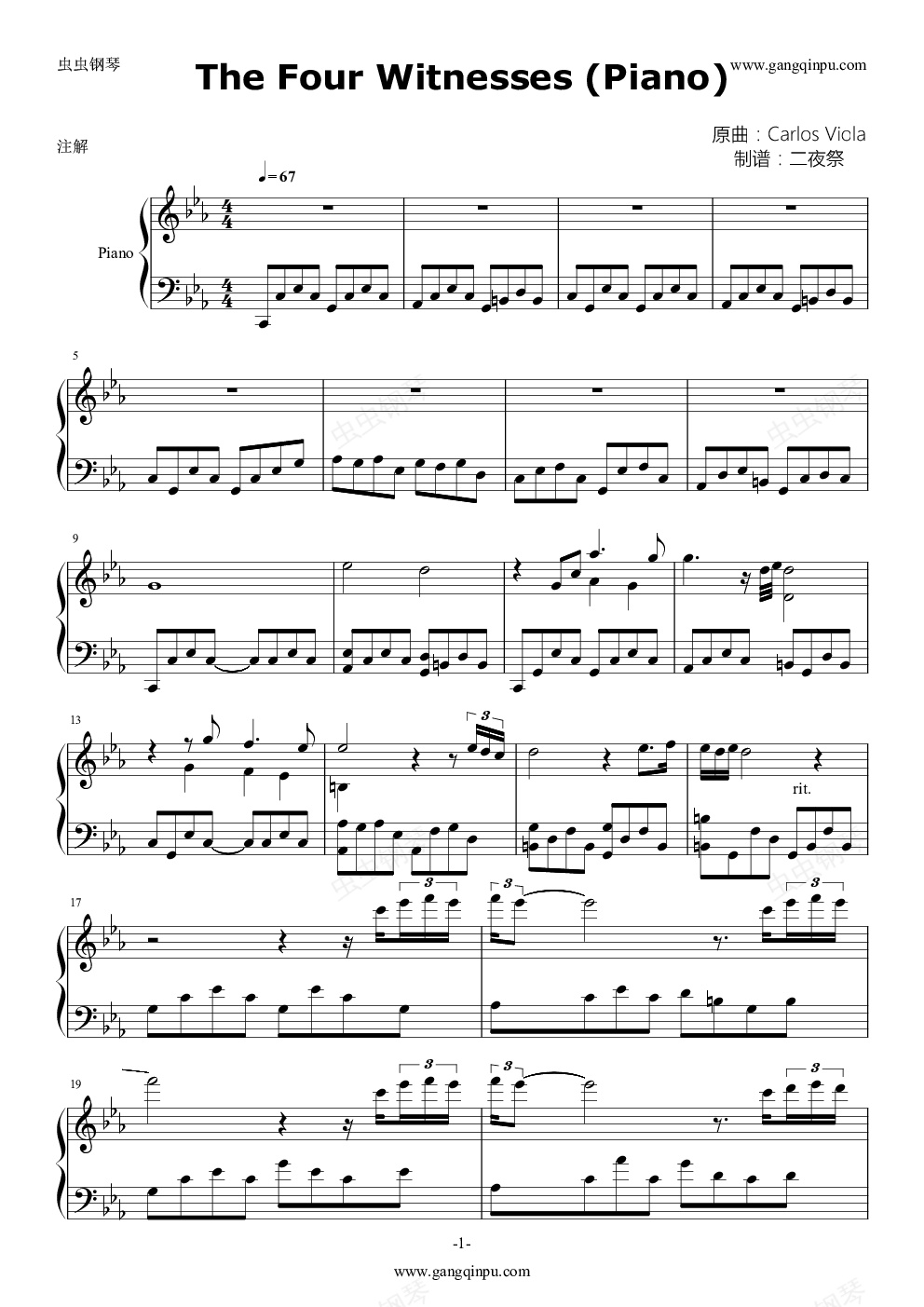 钢琴谱:【最后一扇门】The Four Witnesses (Piano)