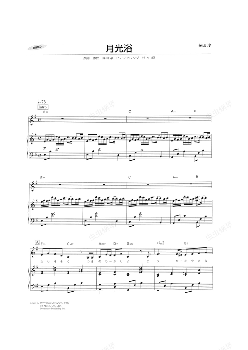 柴田淳《月光浴》钢琴谱,由日版书籍直接扫描而成,因此没有原谱试听。非常忧伤动听的歌曲,希望大家喜欢。