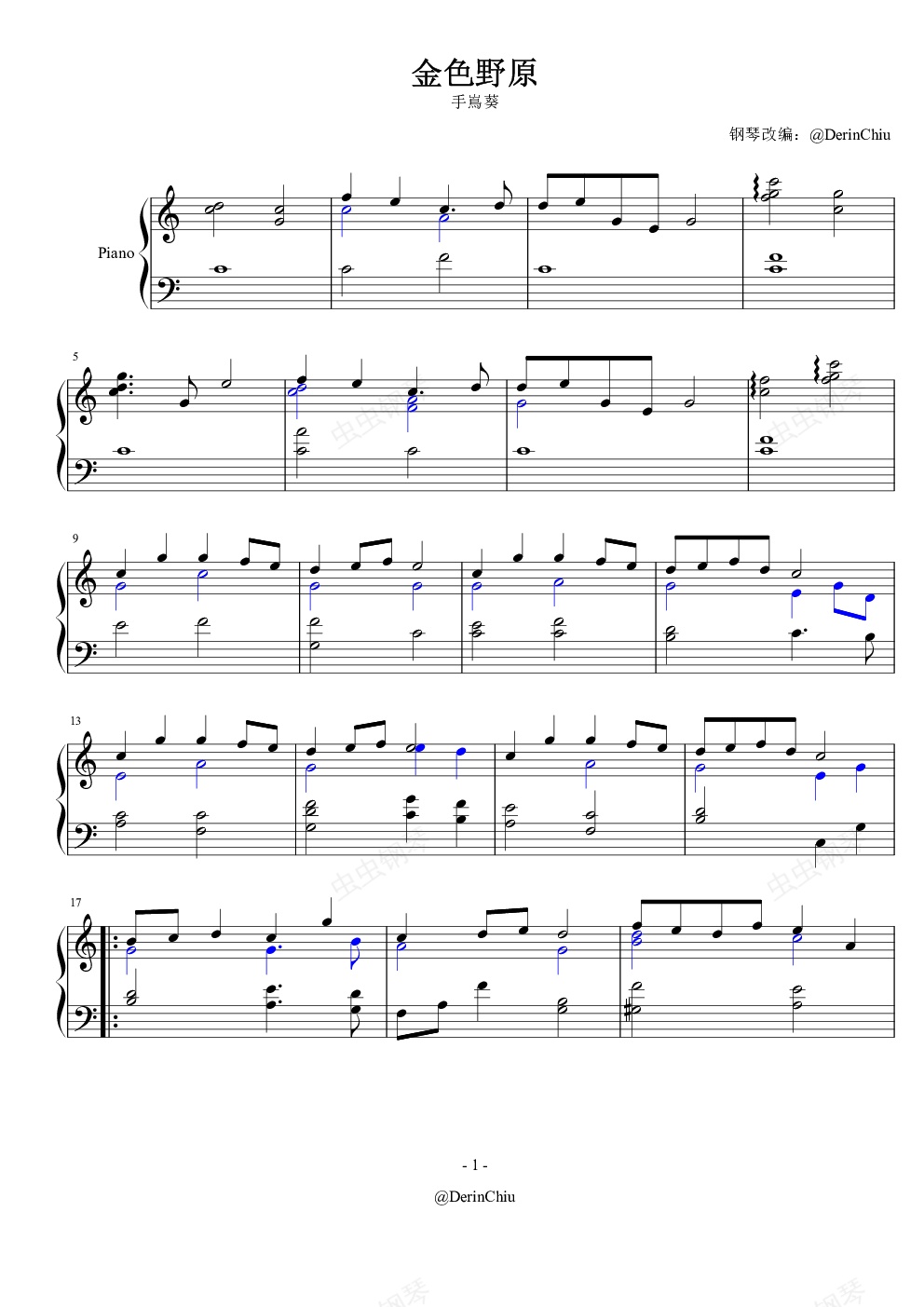 钢琴谱:金色野原