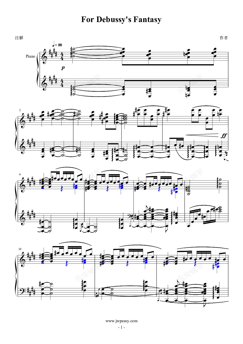 钢琴谱:For Debussy's Fantasy