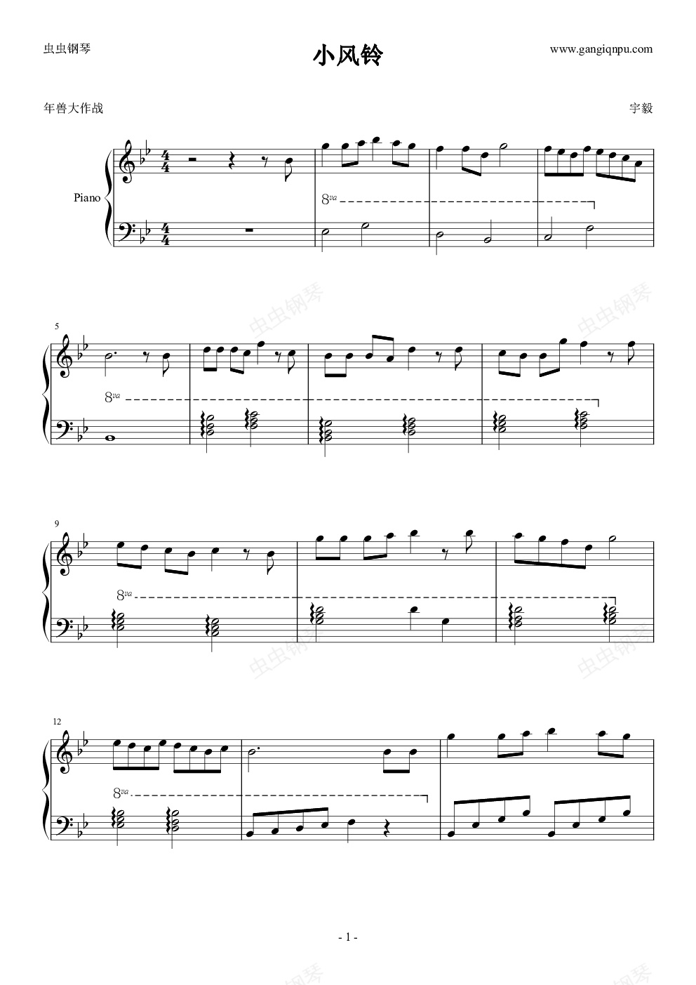 钢琴谱:小风铃 主题曲《年兽大作战》