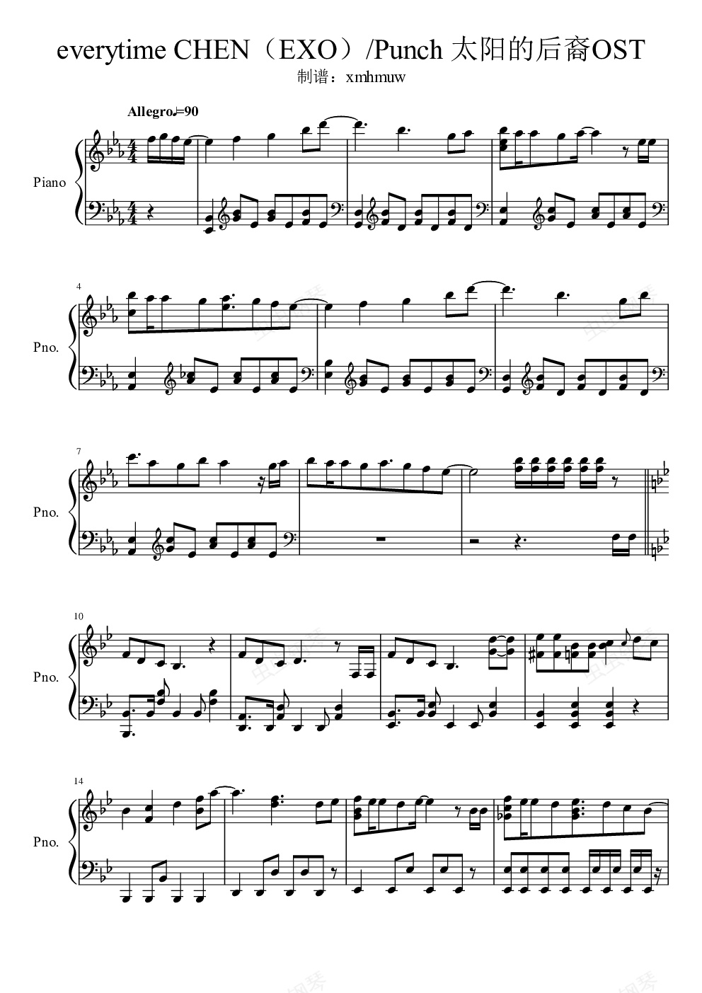 钢琴谱:everytime 太阳的后裔OST CHEN