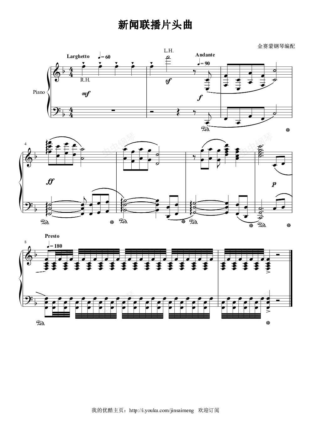 钢琴谱:金赛蒙改编的新闻联播片头曲