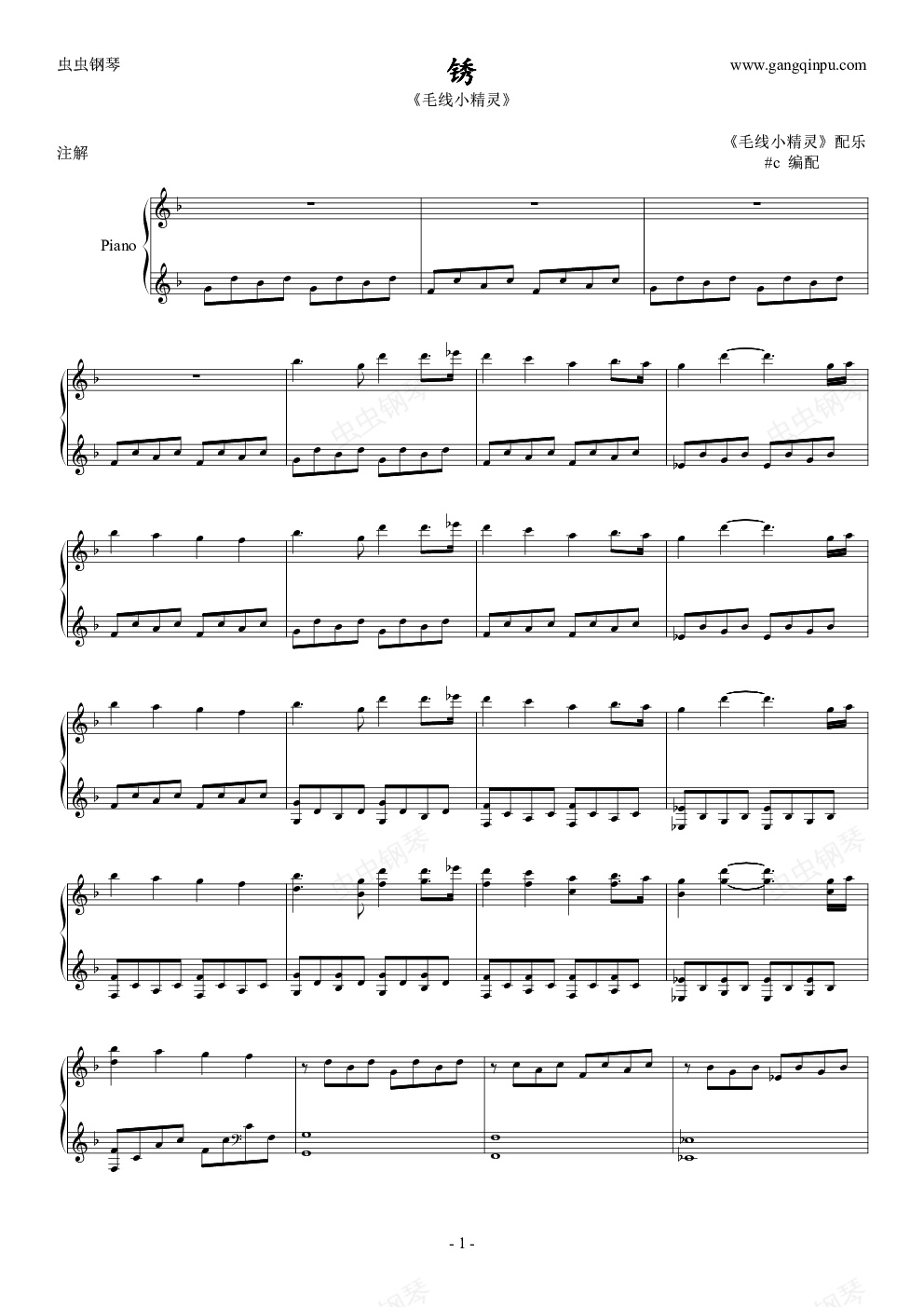EA新出的游戏《毛线小精灵》其中一首配乐,出现于《锈》这一章节。《毛线小精灵》原作中的配乐都带有很浓郁的爱尔兰民族风格,本曲在其中算是稍另类的一首,较为空灵婉转,但却也是最悦耳的一首配乐,楼主的电脑没法下载该游戏,所以只是根据别人实况里面出现的配乐片段扒下来的,所记下的主题的问题应该不大但并不一定完全准确,而且编配的成分比较多,刻意淡化曲子的开始和结束以表现原作里记忆的飘渺不定,演奏的话难度从开始到高潮逐渐增加,如果有兴趣弹的话可以省略高潮部分,单独当作一首抒情小调也是不错的。