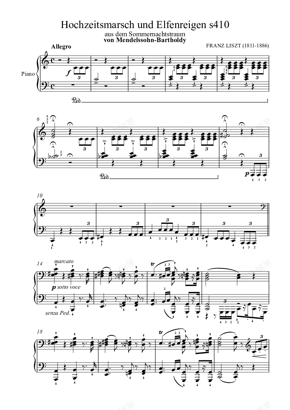 钢琴谱:Hochzeitsmarsch und Elfenreigen s410 (婚礼进行曲)