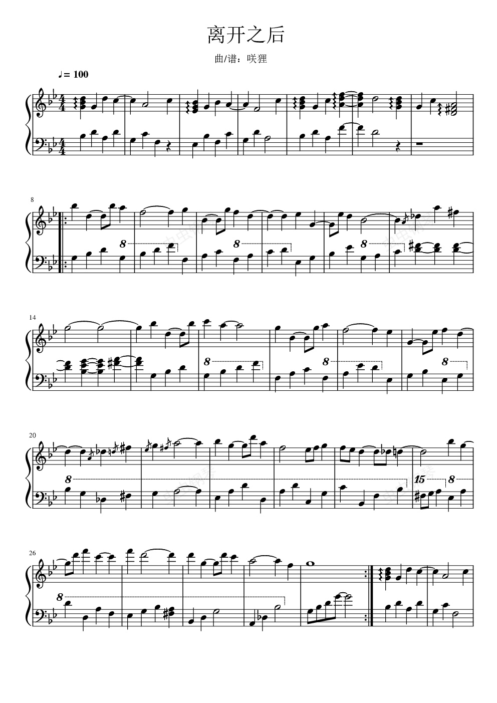 钢琴谱:离开之后