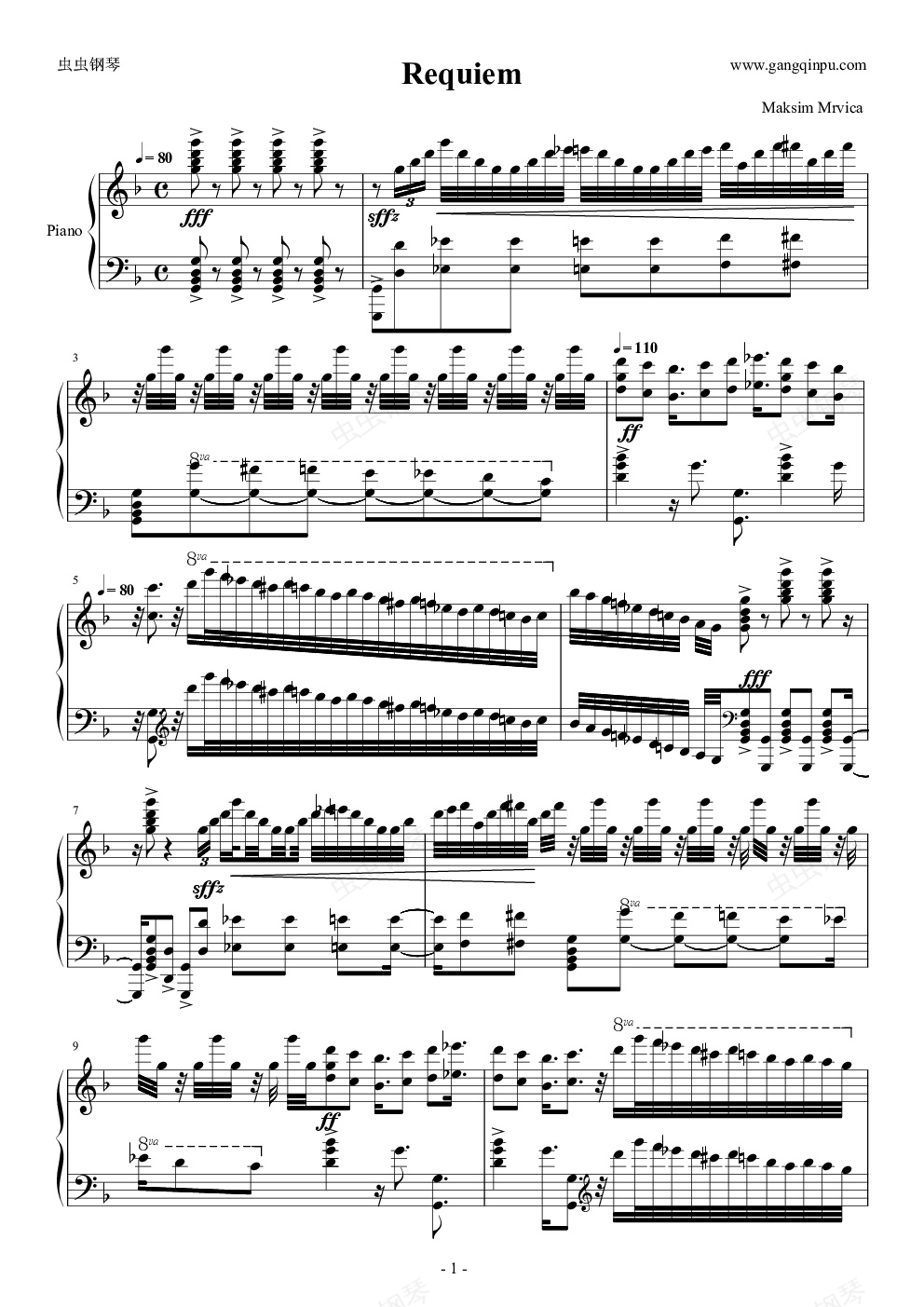 钢琴谱:钢琴谱:Requiem-安魂曲-马克西姆maksim