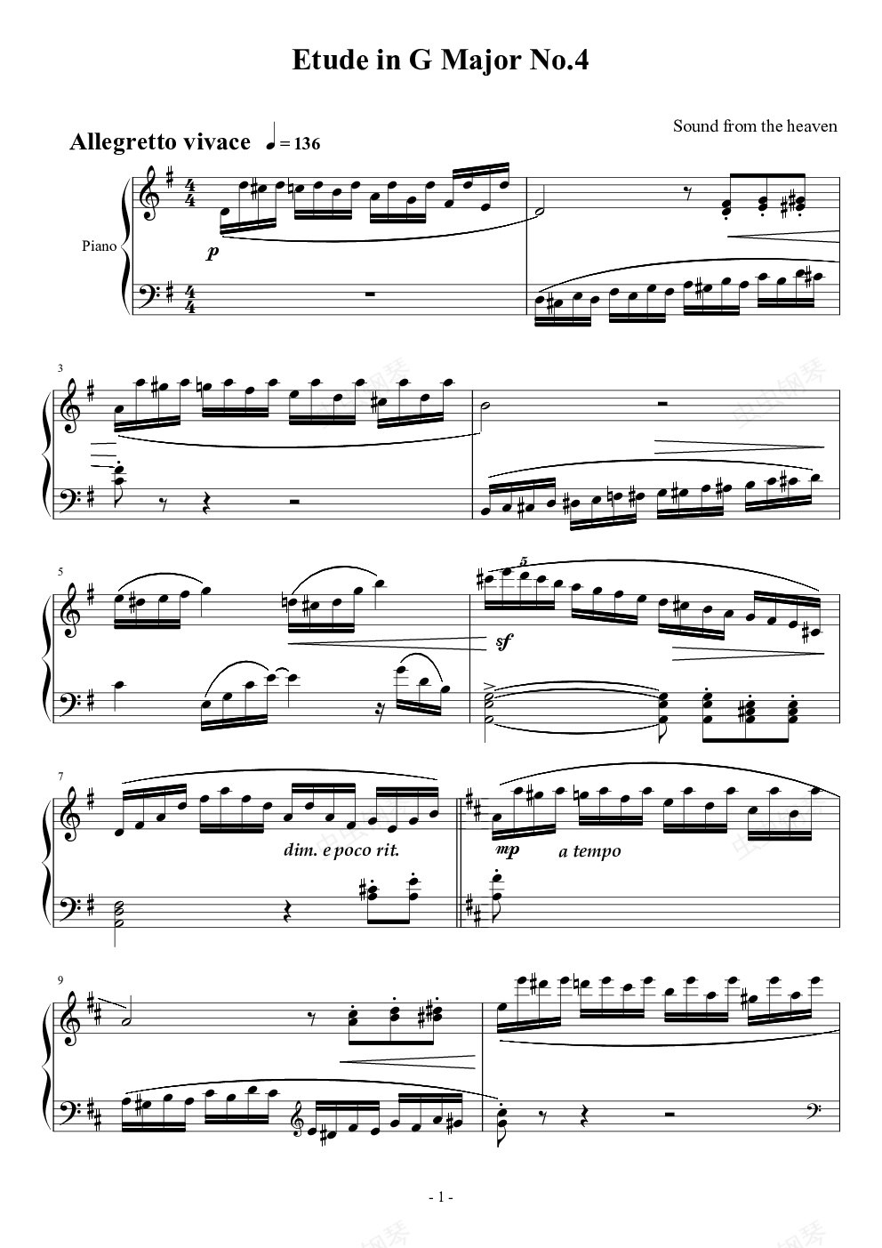 钢琴谱:奋斗练习曲——G大调练习曲No.4