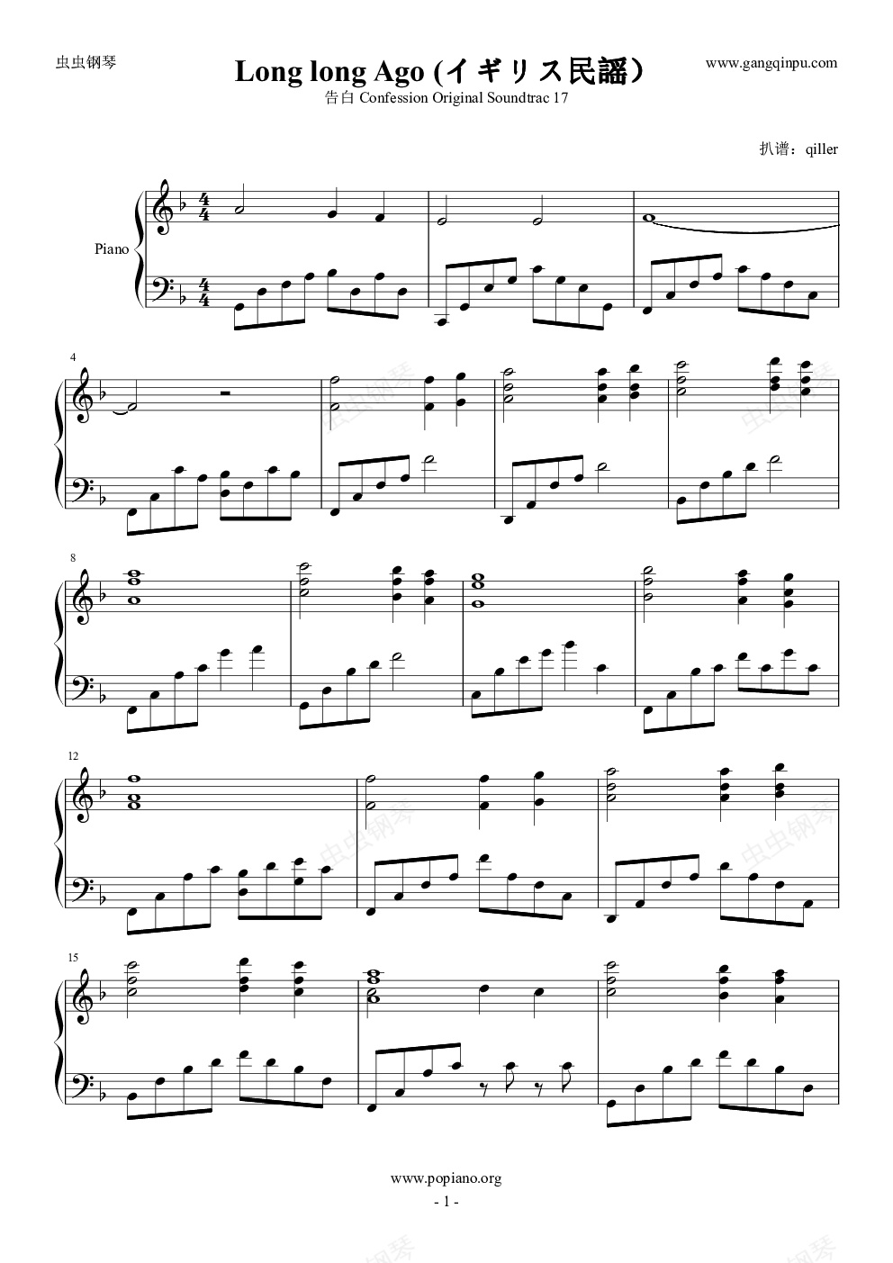 特别喜欢这一版的long long ago,旋律和其他一样,但合唱和钢琴伴奏的和声编配很有日式风格,淡淡的忧郁;本谱适合作为该曲目的钢琴伴奏。
