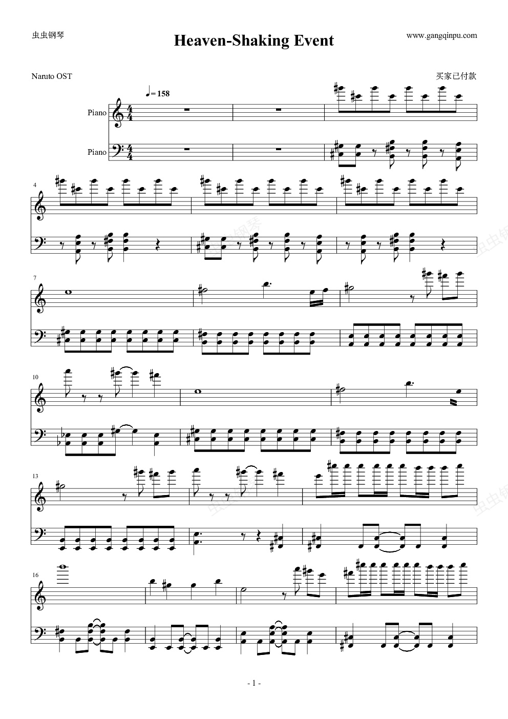 钢琴谱:Heaven-Shaking Event火影忍者疾风传 动天