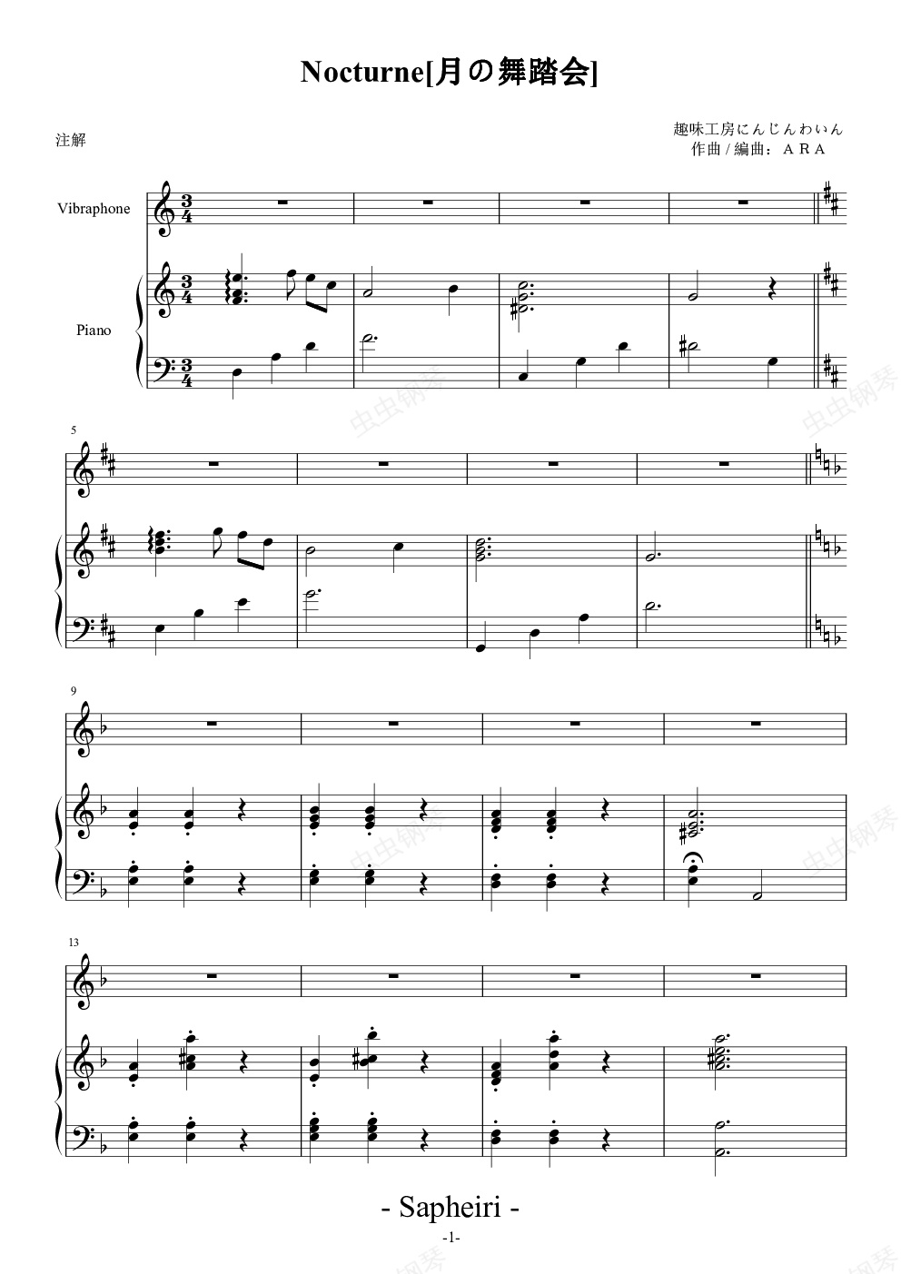 钢琴谱:【葉月ゆら】Nocturne[月の舞踏会]