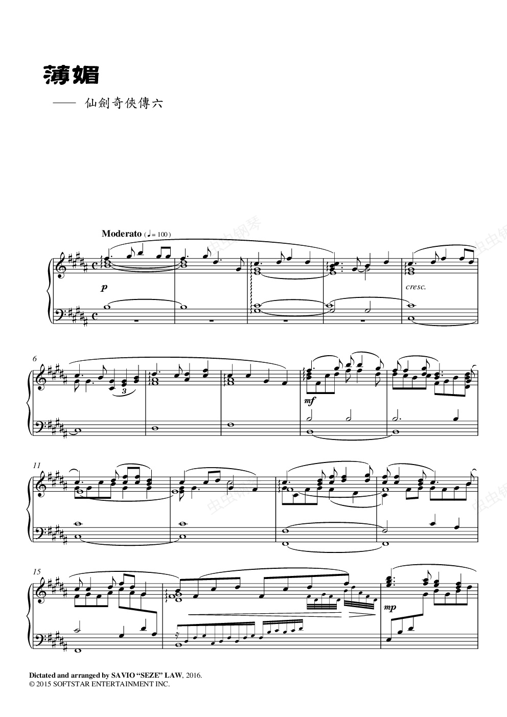 钢琴谱:薄媚 —《仙剑奇侠传六》