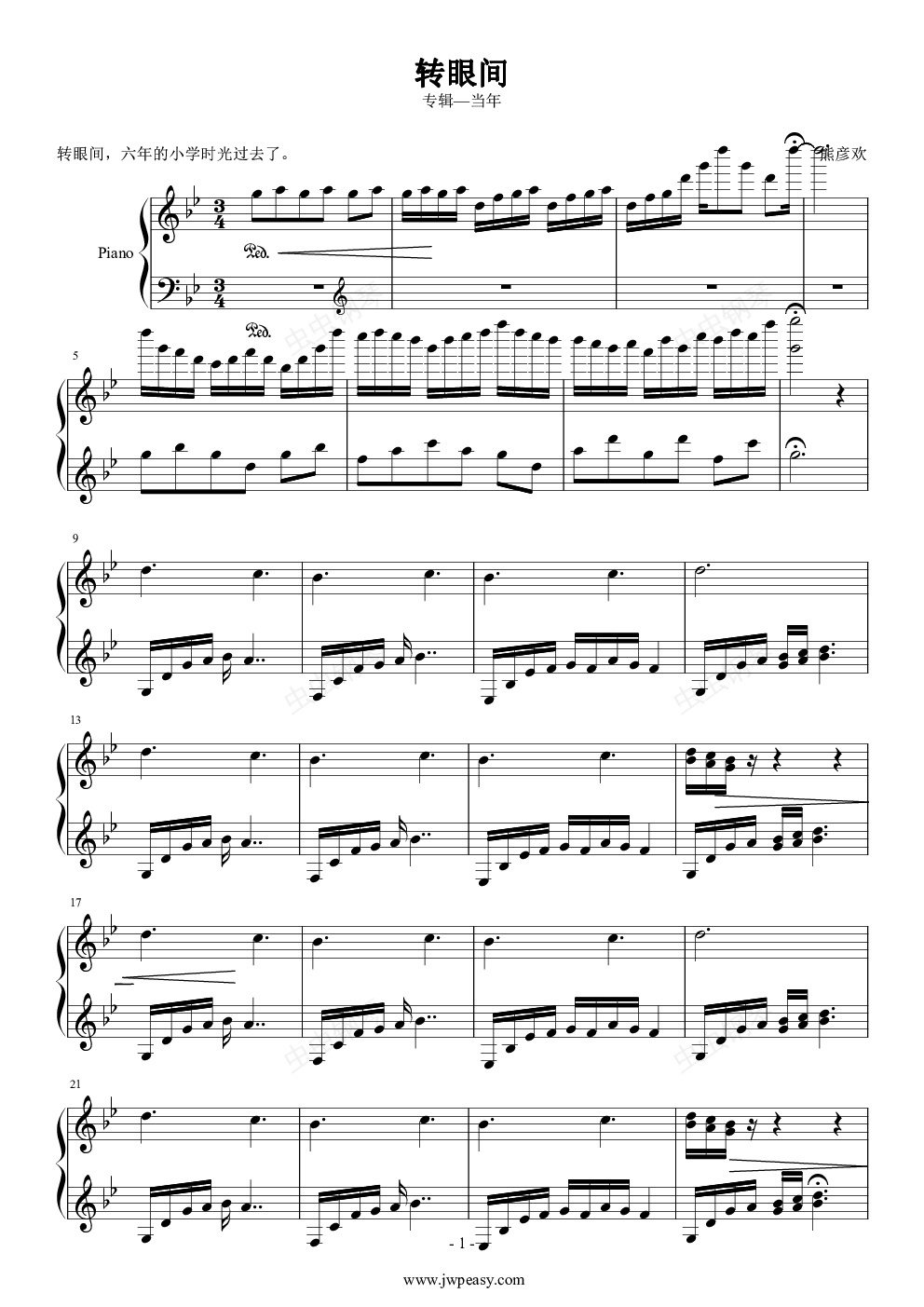 钢琴谱:转眼间