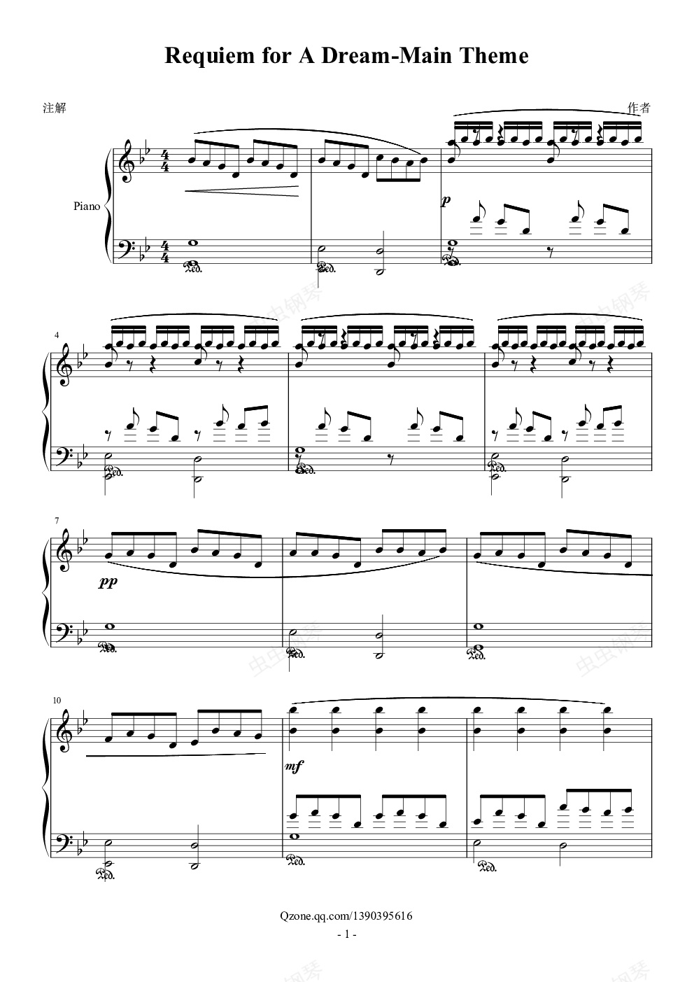 钢琴谱:Requiem For A Dream - Main Theme