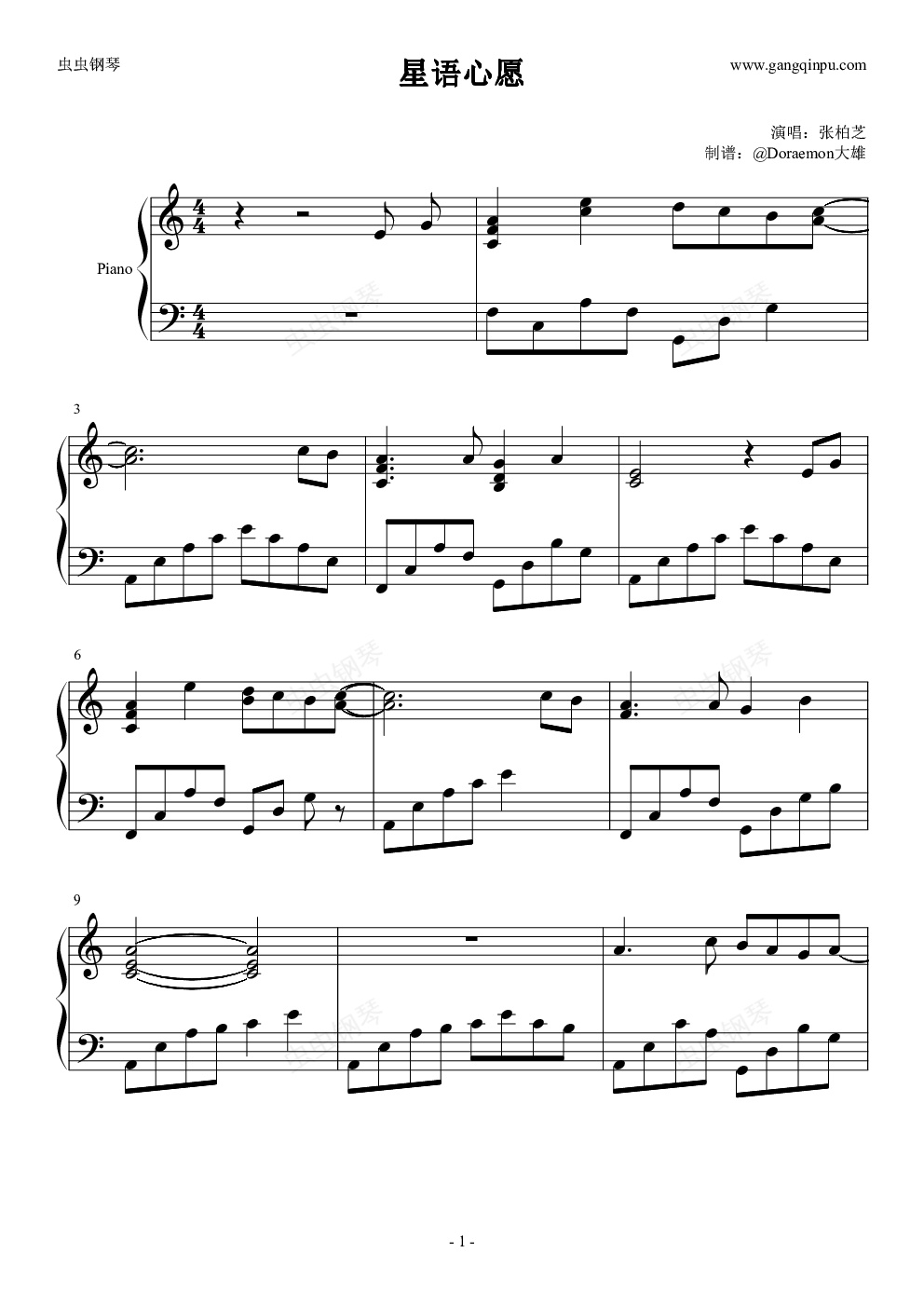 钢琴谱:星语心愿(C大调演奏版)