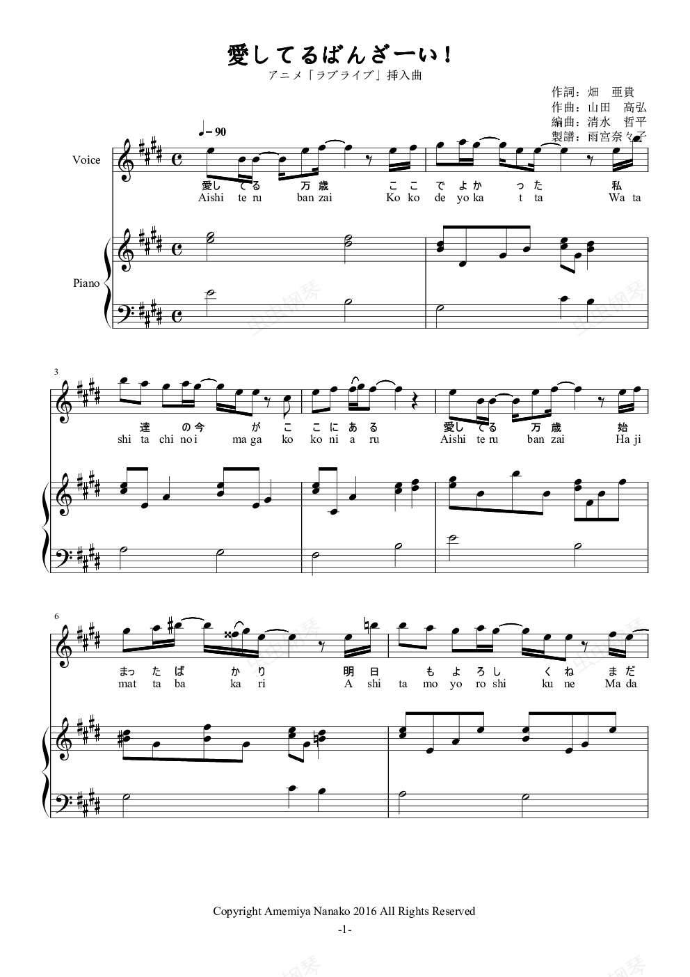 钢琴谱:愛してるばんざーい!爱上你万岁_μ‘s缪斯_西木野真姬钢琴弹唱版