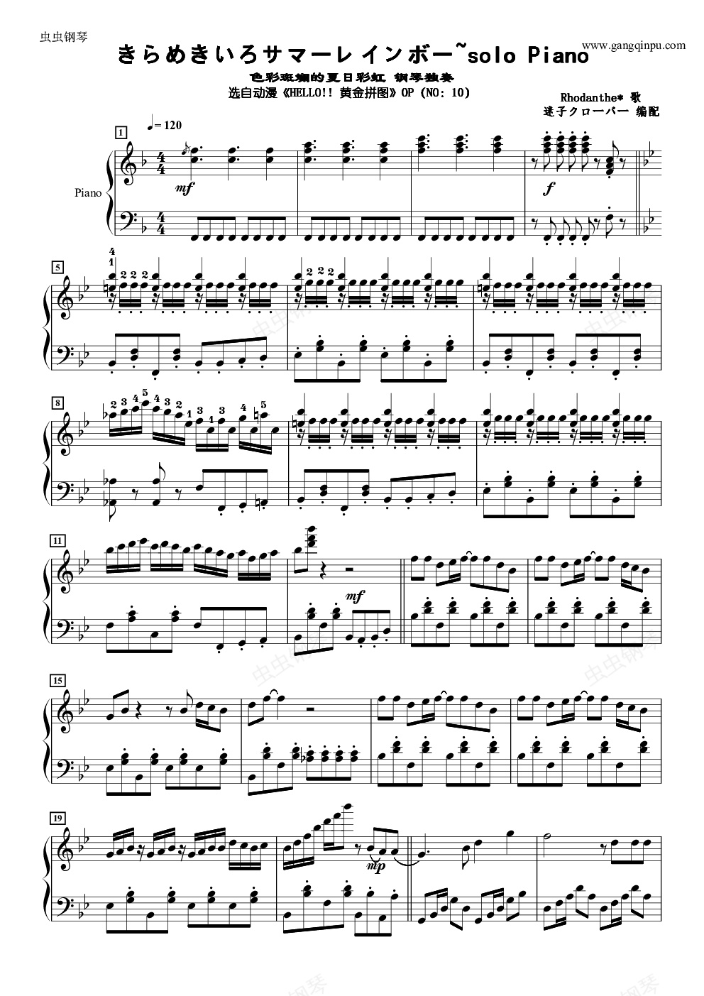 钢琴谱:きらめきいろサマーレインボー~solo Piano