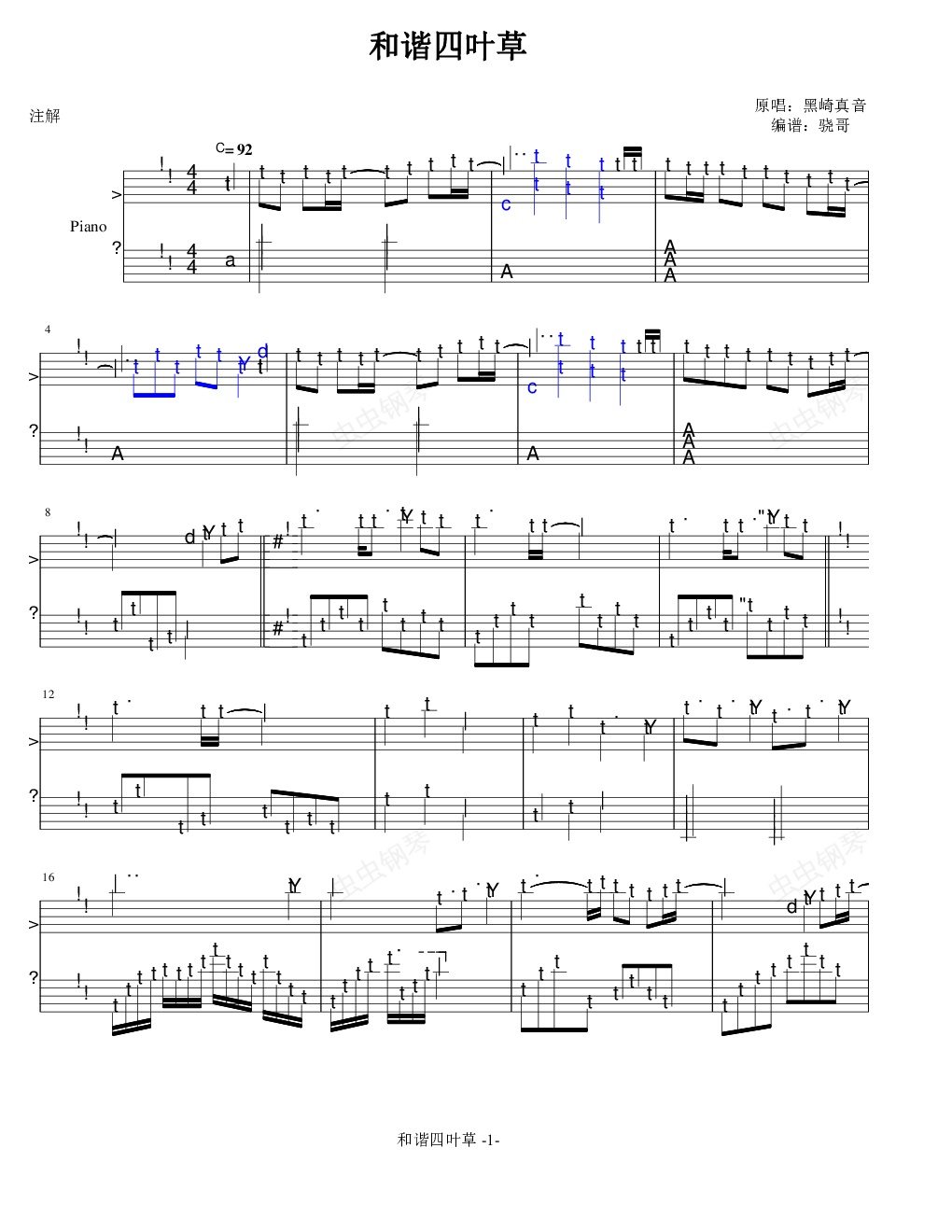 钢琴谱:【学园孤岛ED1】和谐四叶草