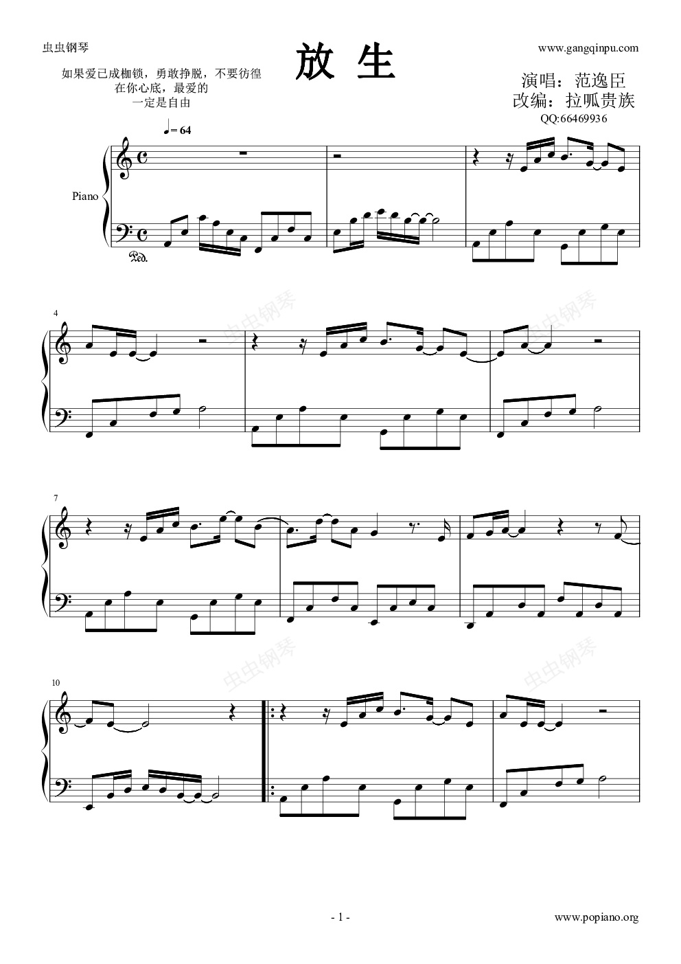 钢琴谱:放生