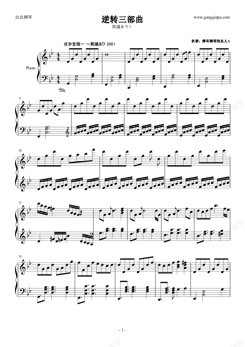 钢琴谱:【逆转裁判】成歩堂龍一 ~異議あり! 合集