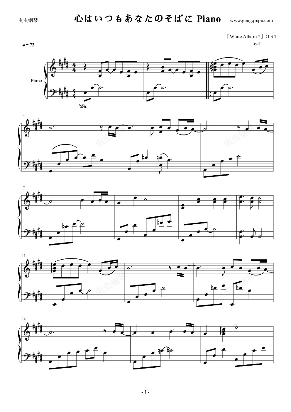 官方发售O.S.T中自带的钢琴版~冬马NE线《心はいつもあなたのそばに》