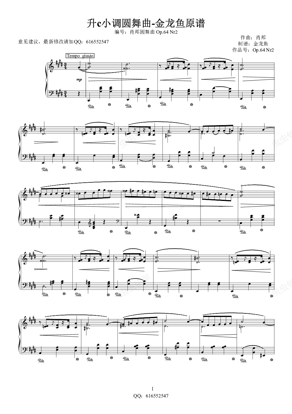 钢琴谱:肖邦-升c小调圆舞曲-金龙鱼160809