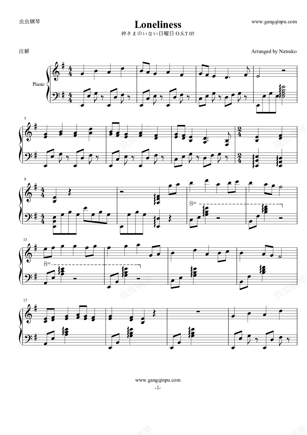钢琴谱:神不在的星期天-OST-Loneliness-