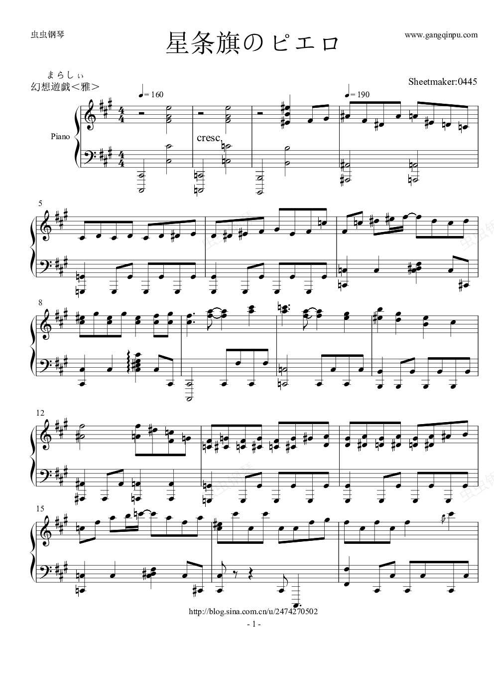 钢琴谱:【触手猴】【幻想游戏<雅>】星条旗のピエロ