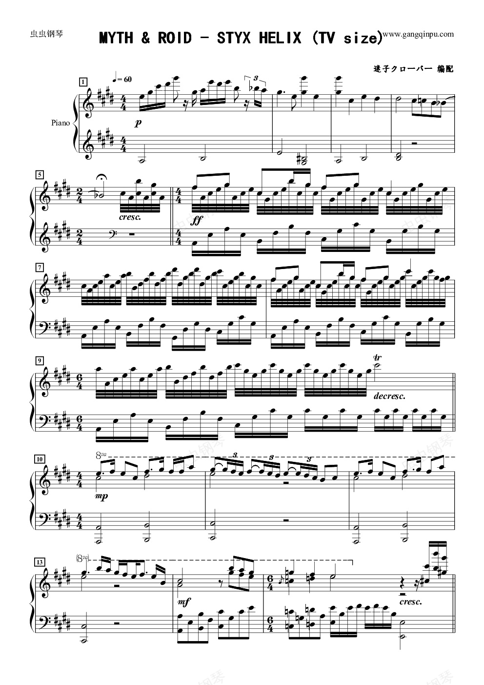 钢琴谱:MYTH & ROID - STYX HELIX (TV size)