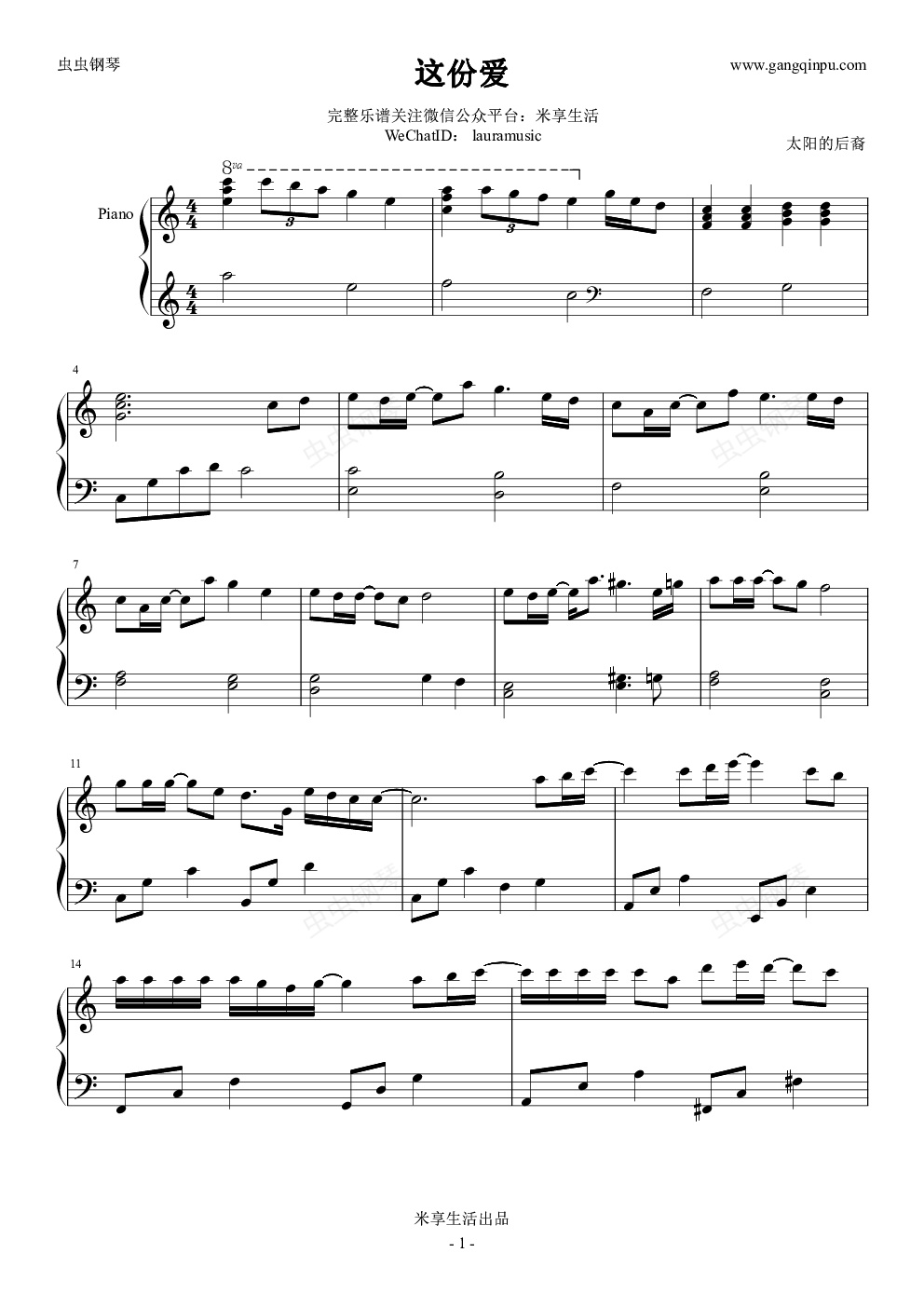 钢琴谱:这份爱 太阳的后裔 简单好听