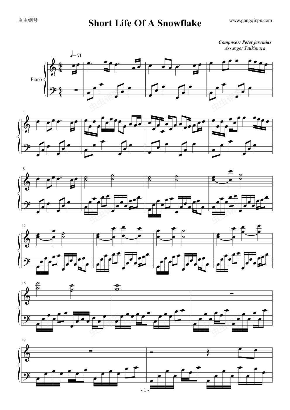 钢琴谱:Peter jeremias - Short Life Of A Snowflake