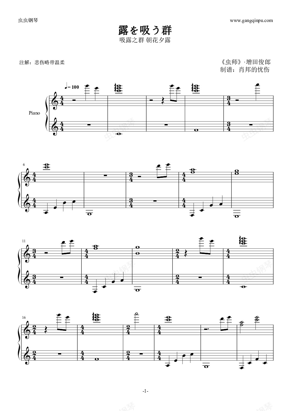 钢琴谱:露を吸う群-虫师 尽量还原曲风