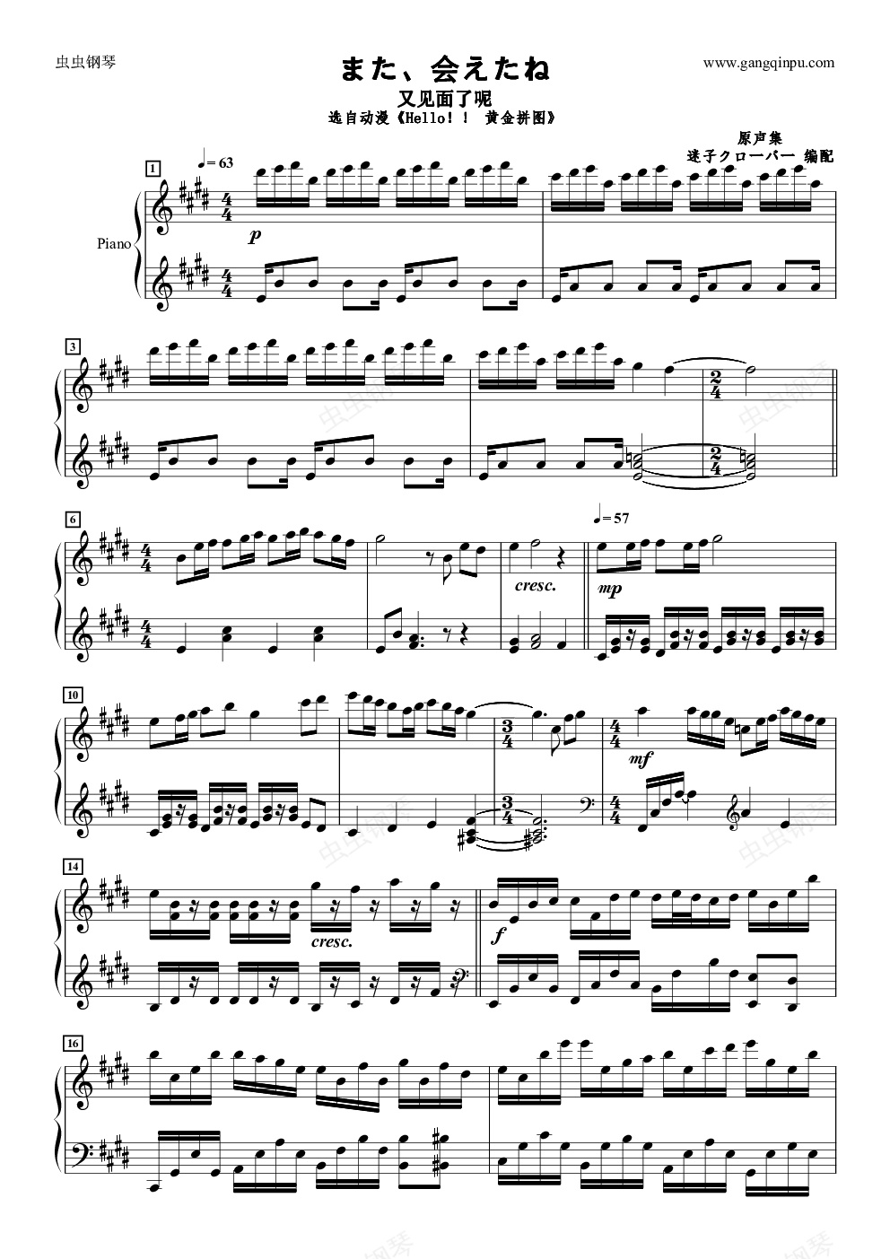 钢琴谱:また、会えたね