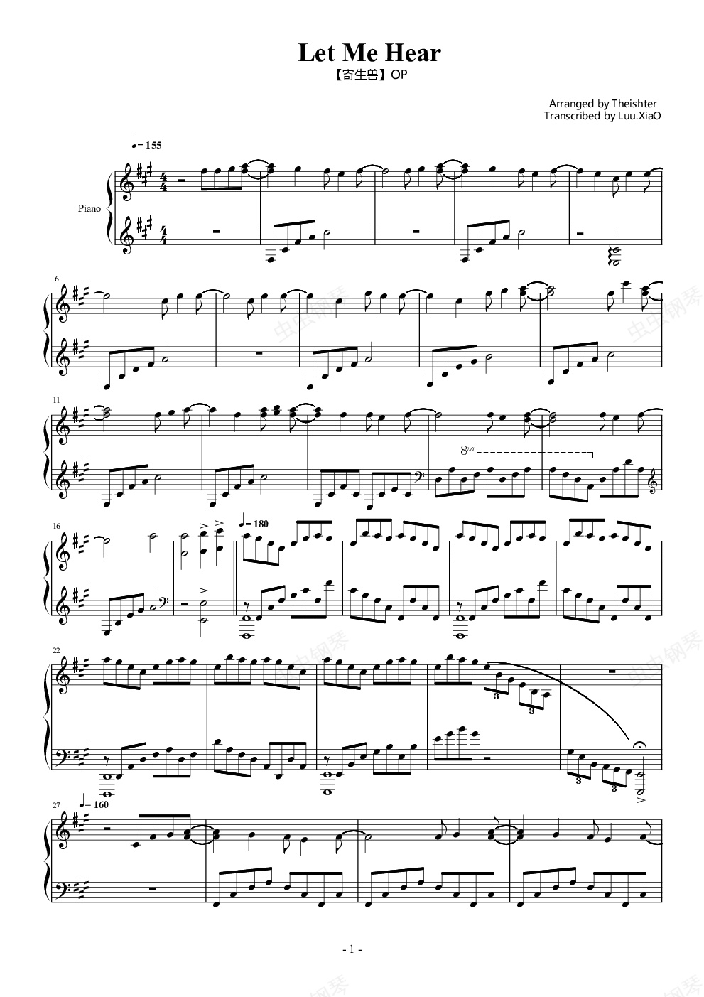 钢琴谱:【寄生兽】OP - Let Me Hear【Theishter版本】(Luu.Xiao)