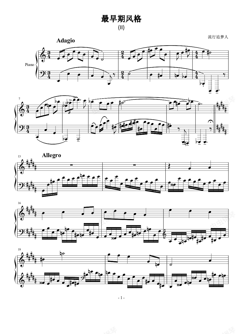 钢琴谱:最早期风格 (II)