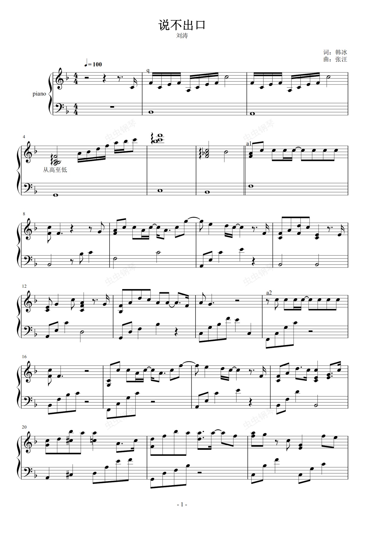 钢琴谱:说不出口- 电视剧《欢乐颂》插曲