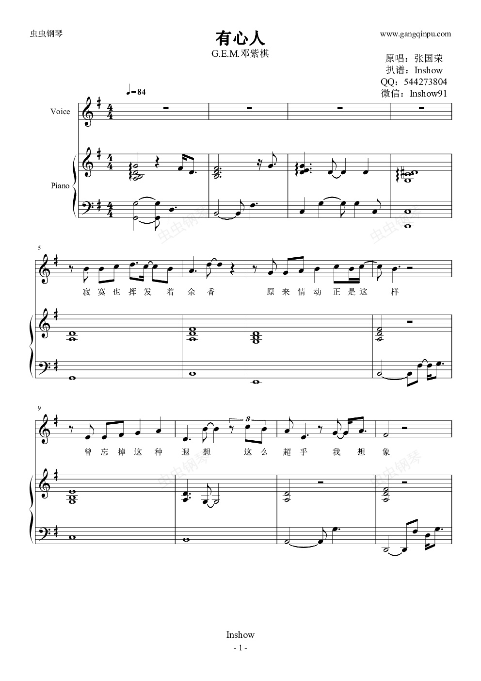 钢琴谱:有心人【弹唱谱】-G.E.M.邓紫棋