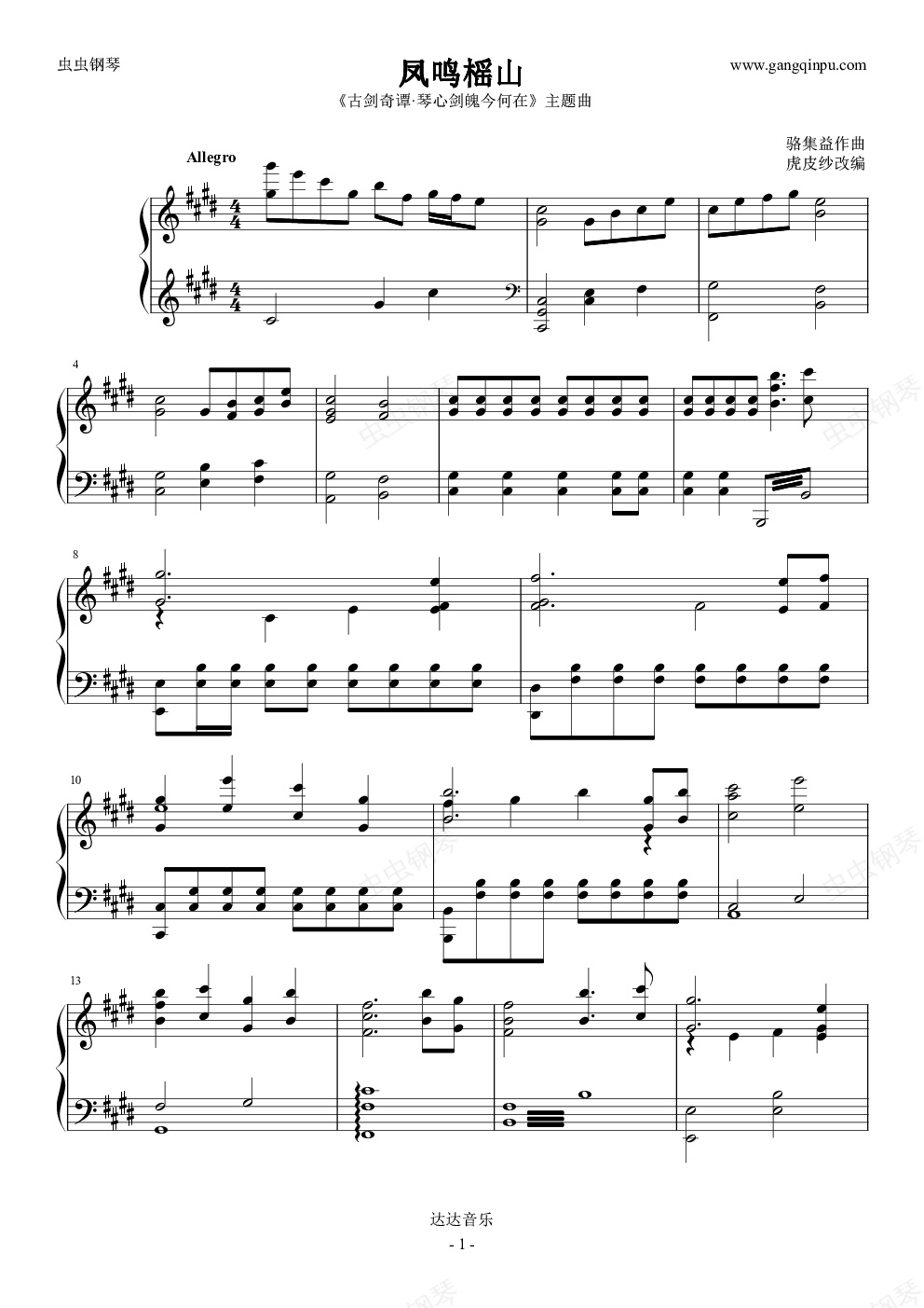 钢琴谱:古剑奇谭 凤鸣榣山(非官方版)