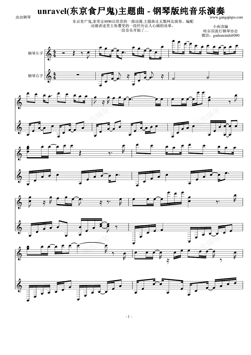钢琴谱:unravel(东京喰种)2016年6月新唯美演奏版