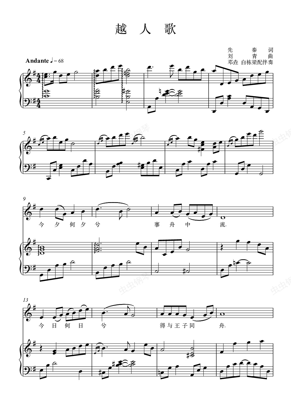 钢琴谱:《越人歌》钢琴伴奏谱正谱