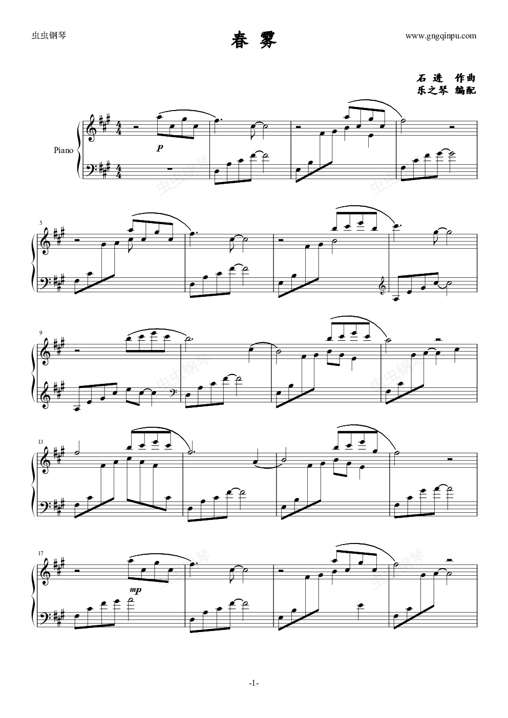 钢琴谱:春雾