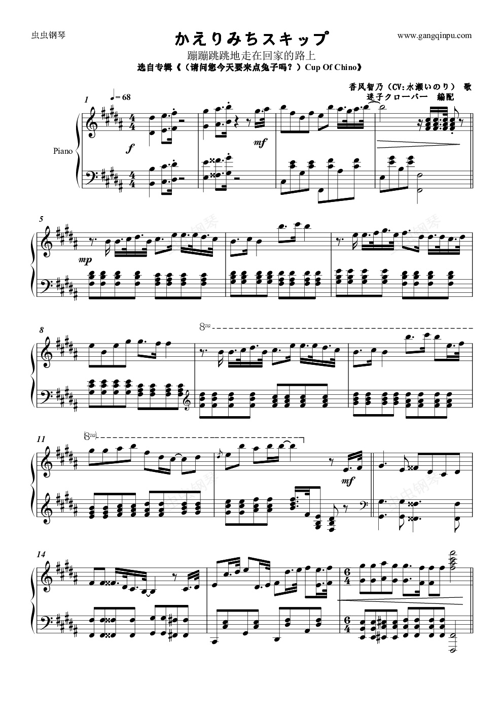 钢琴谱:【ご注文はウサギですか?】かえりみちスキップ