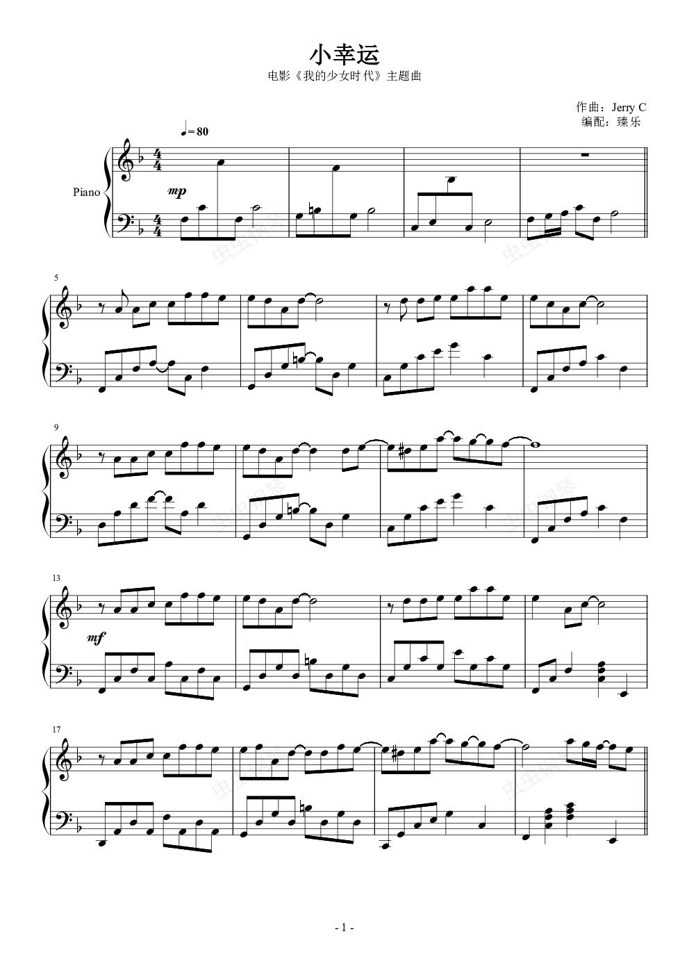 钢琴谱:小幸运