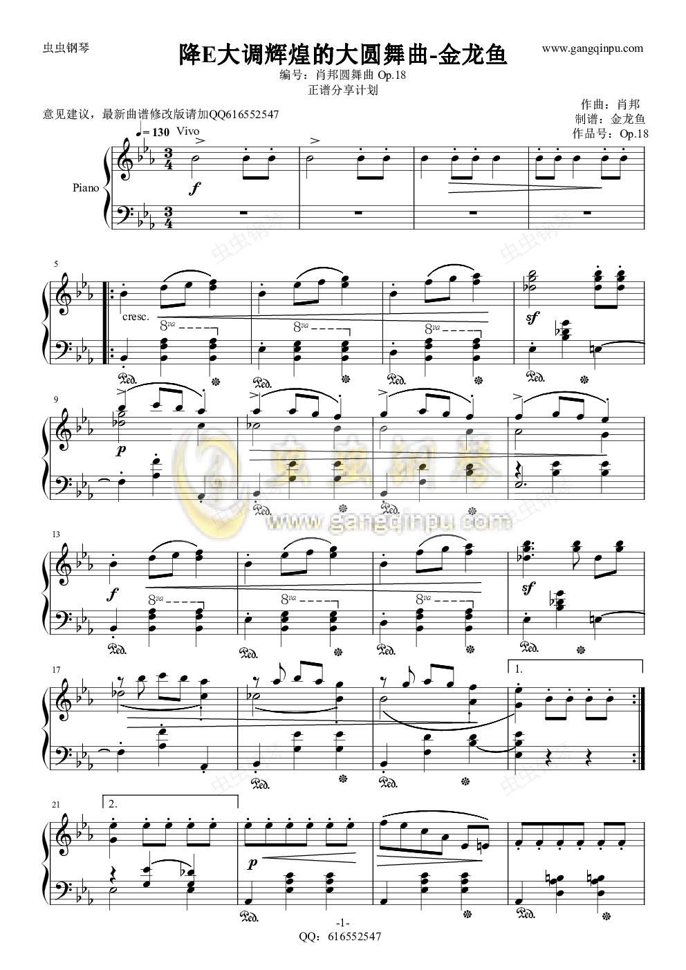 钢琴谱:肖邦-降E大调辉煌的大圆舞曲-金龙鱼