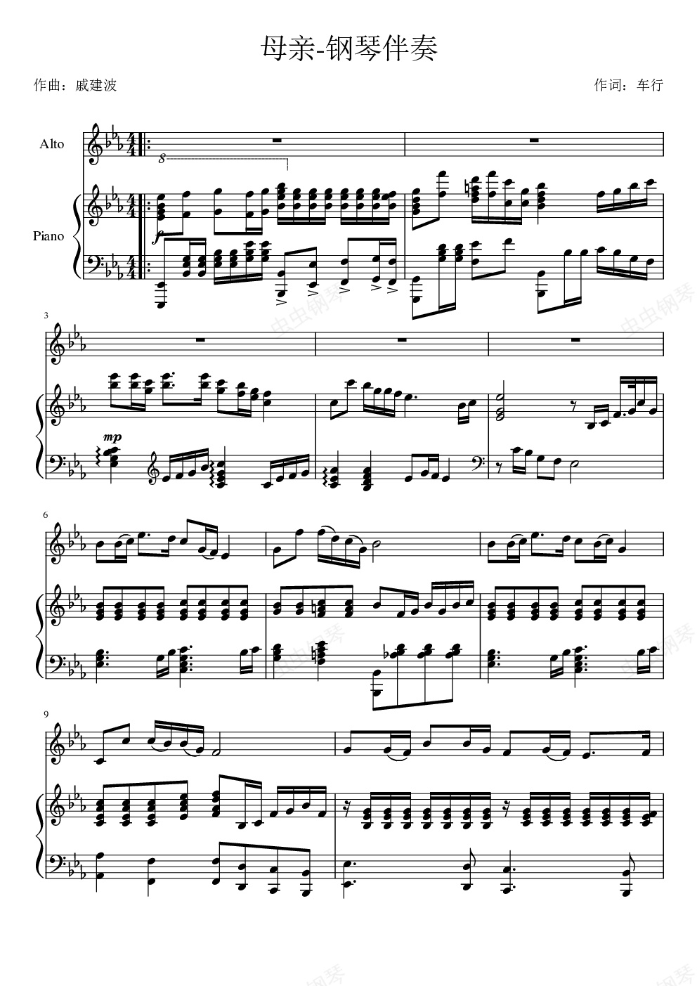 钢琴谱:母亲-钢琴伴奏-金龙鱼