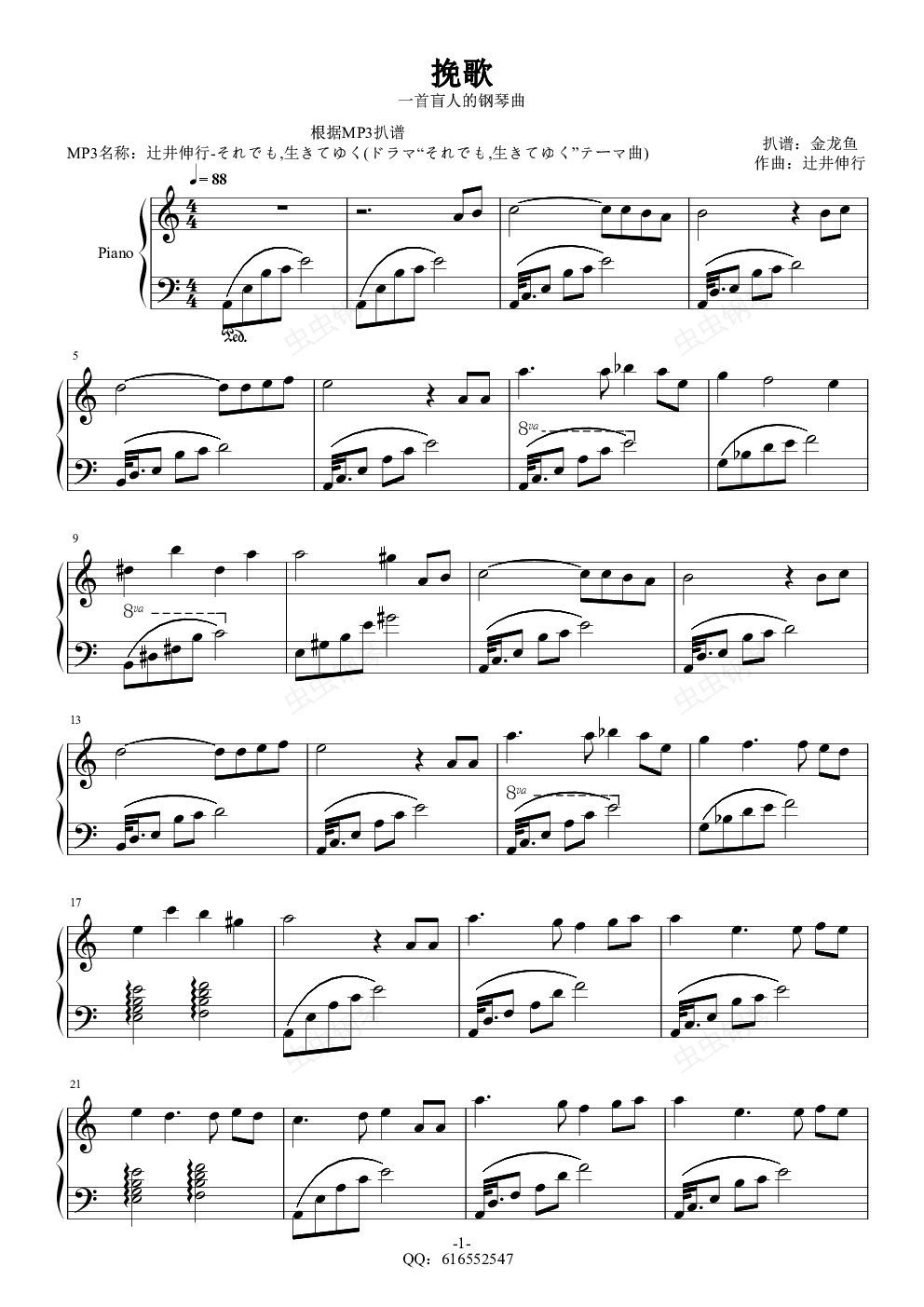 钢琴谱:挽歌-辻井伸行-金龙鱼
