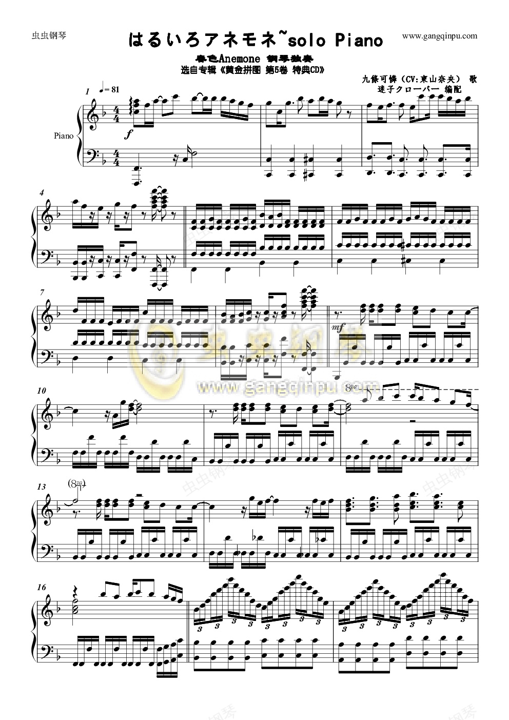 钢琴谱:【きんいろモザイク】はるいろアネモネ~solo Piano